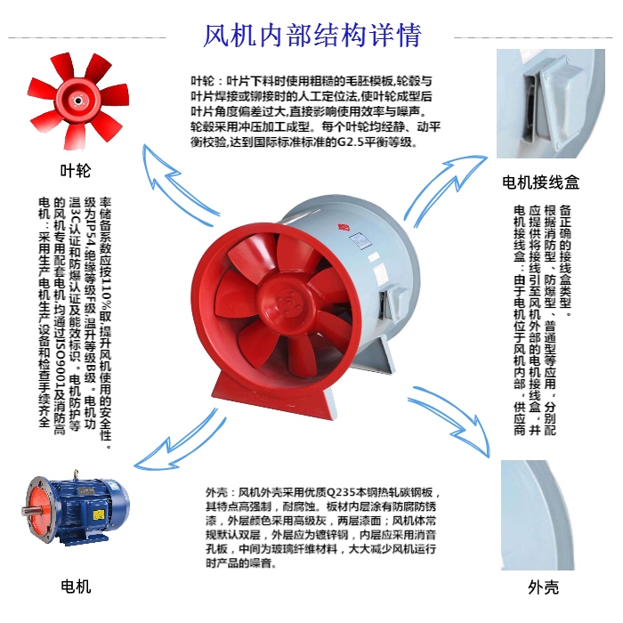 屋頂消防排煙風機根據不同的使用環境和輸送介質,制成常規型、防腐型、防爆型、防腐防爆型。可根據使用要求制成全鋁質消防高溫排煙屋頂風機,并配設入口排煙防火閥。屋頂消防排煙風機選配附件:按需要可配設重力式止回風閥、防鳥(蟲)網、檢修開關、集中控制箱等附件。